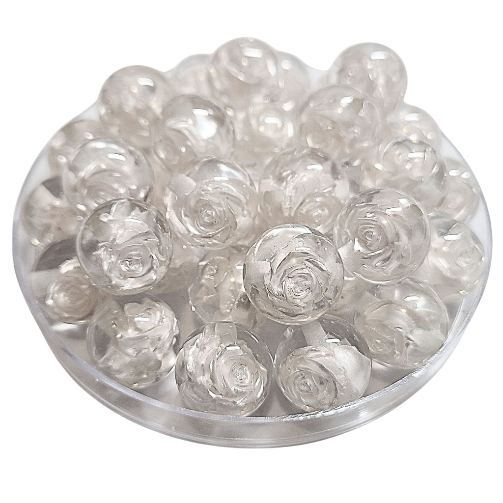 303 - Boules acryliques fleurs, Blanc nacré 16MM