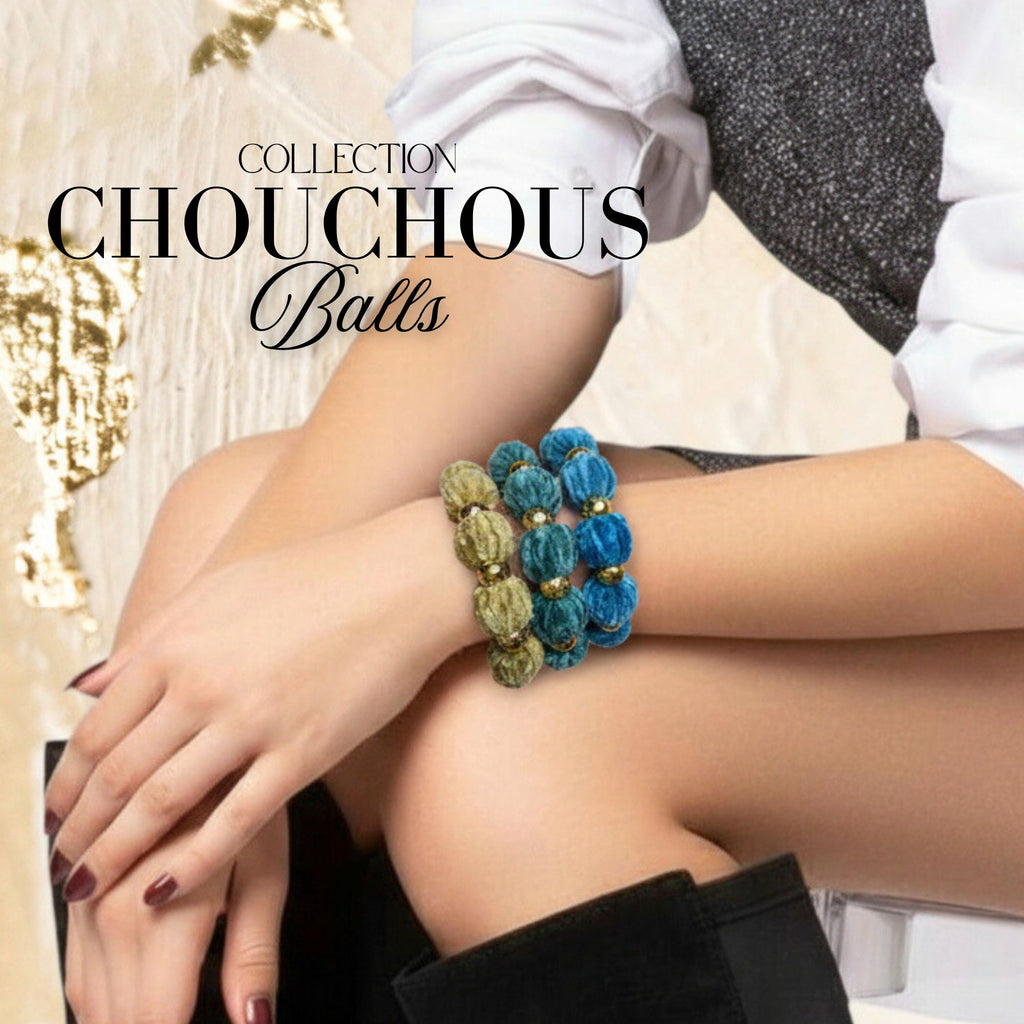 😊Le montage est réalisé avec 11 chouchous balls, 11 boules brossées de 10MM et du fil élastique