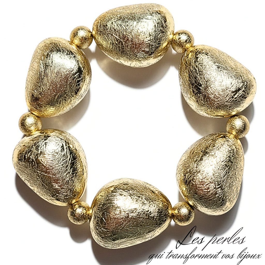 Perles Galets brossées en CCB, Réf CCB77D - Doré 27MM