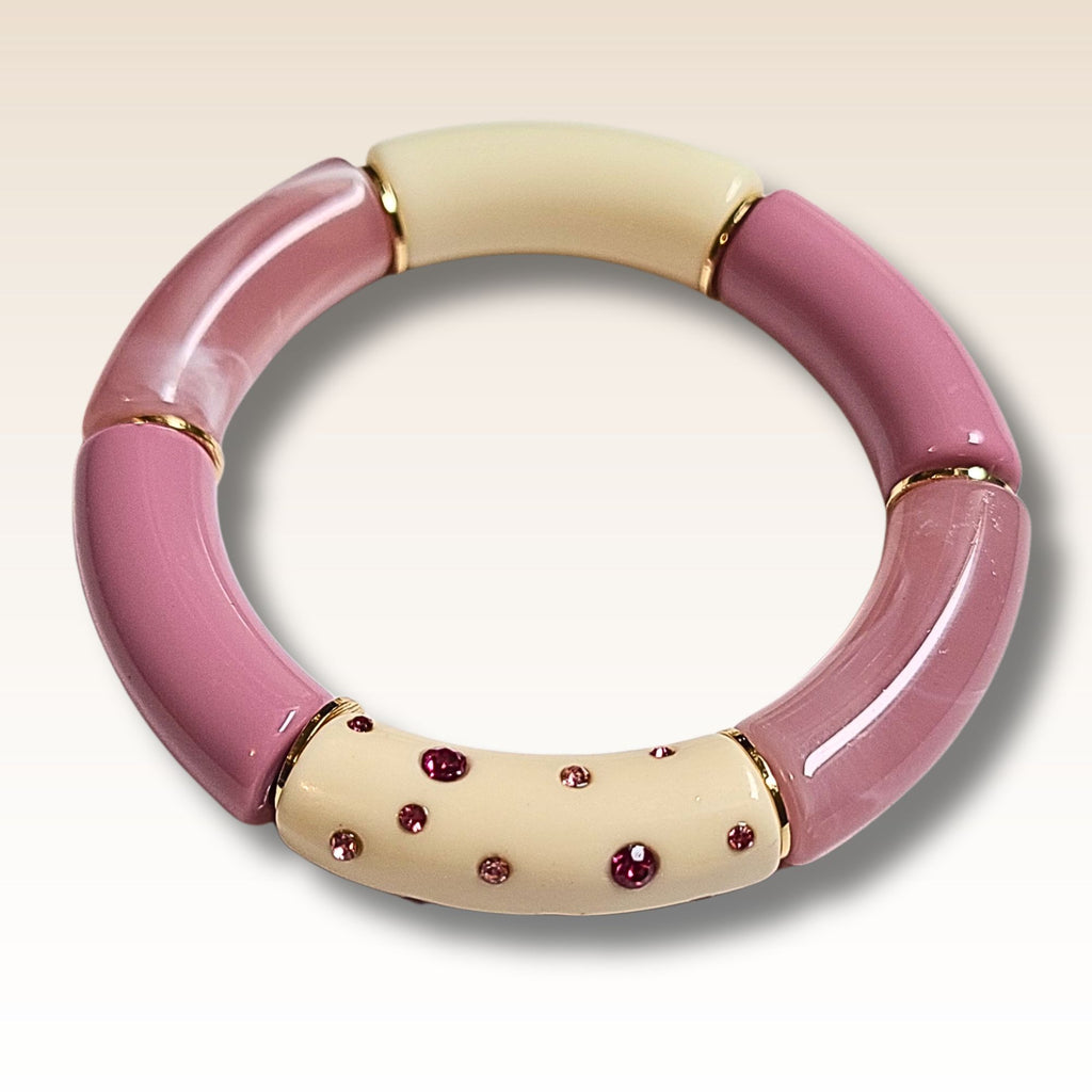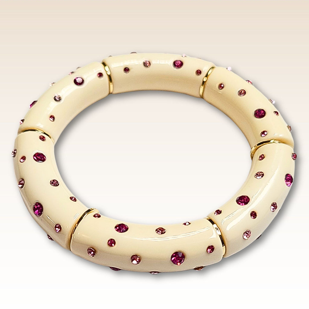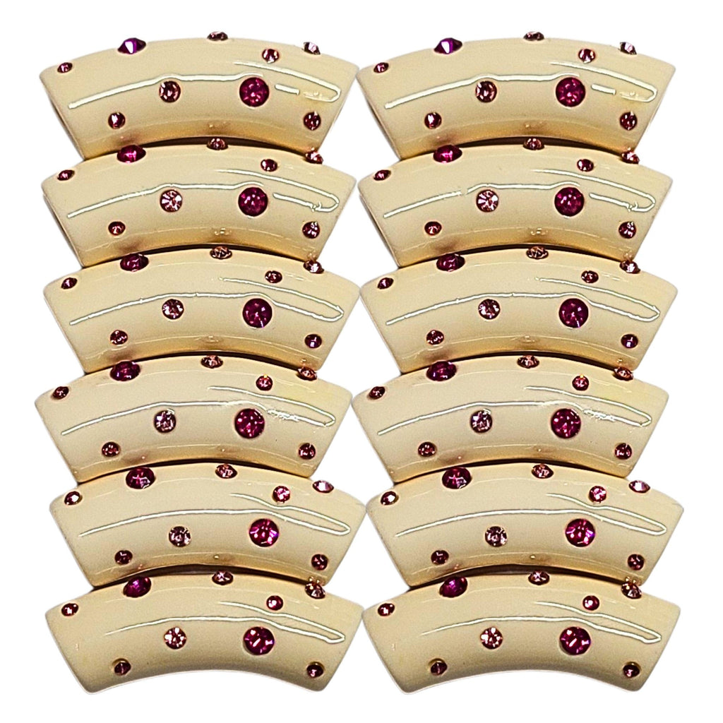 423 - Tubes incurvés, Ivoire & Strass - Spinelle Rose