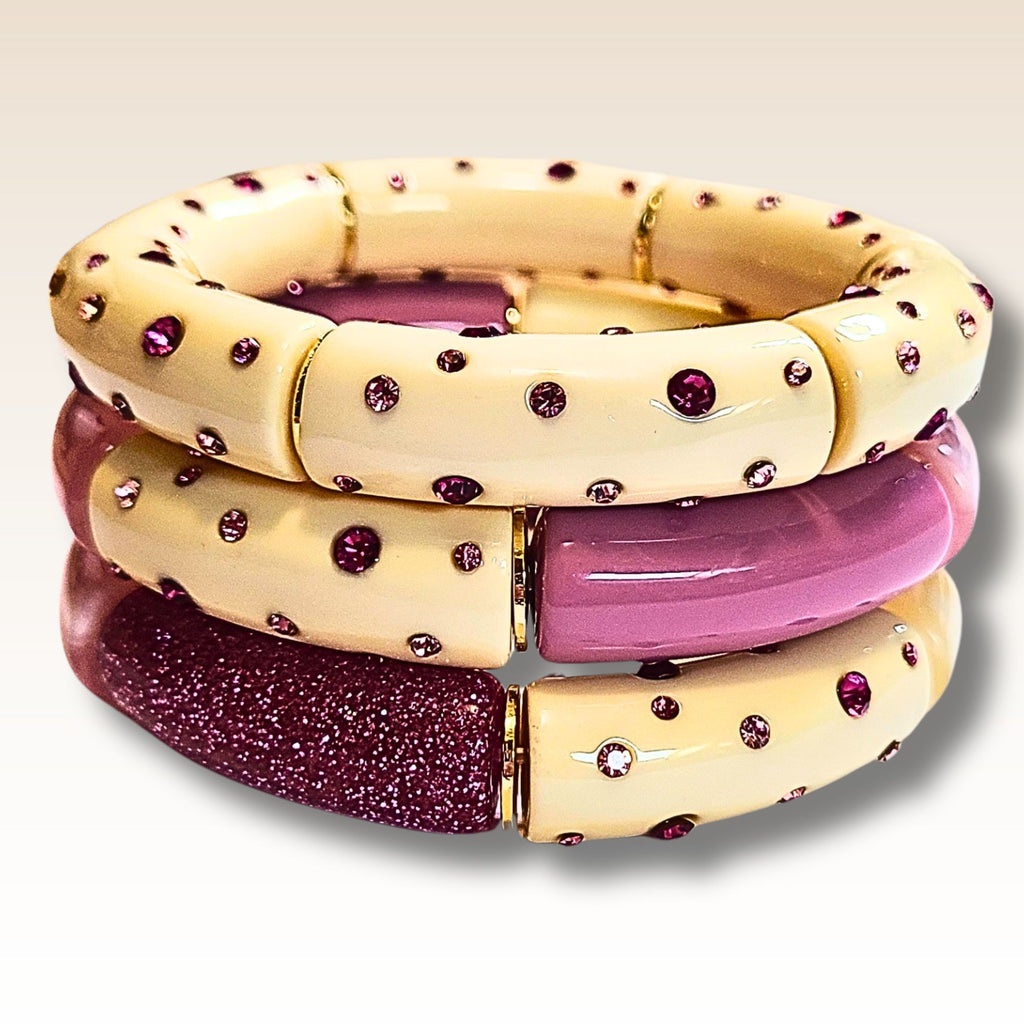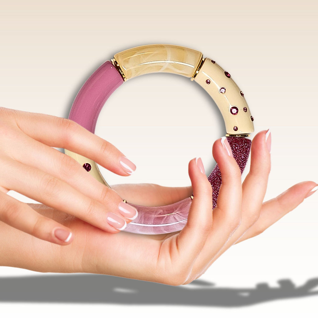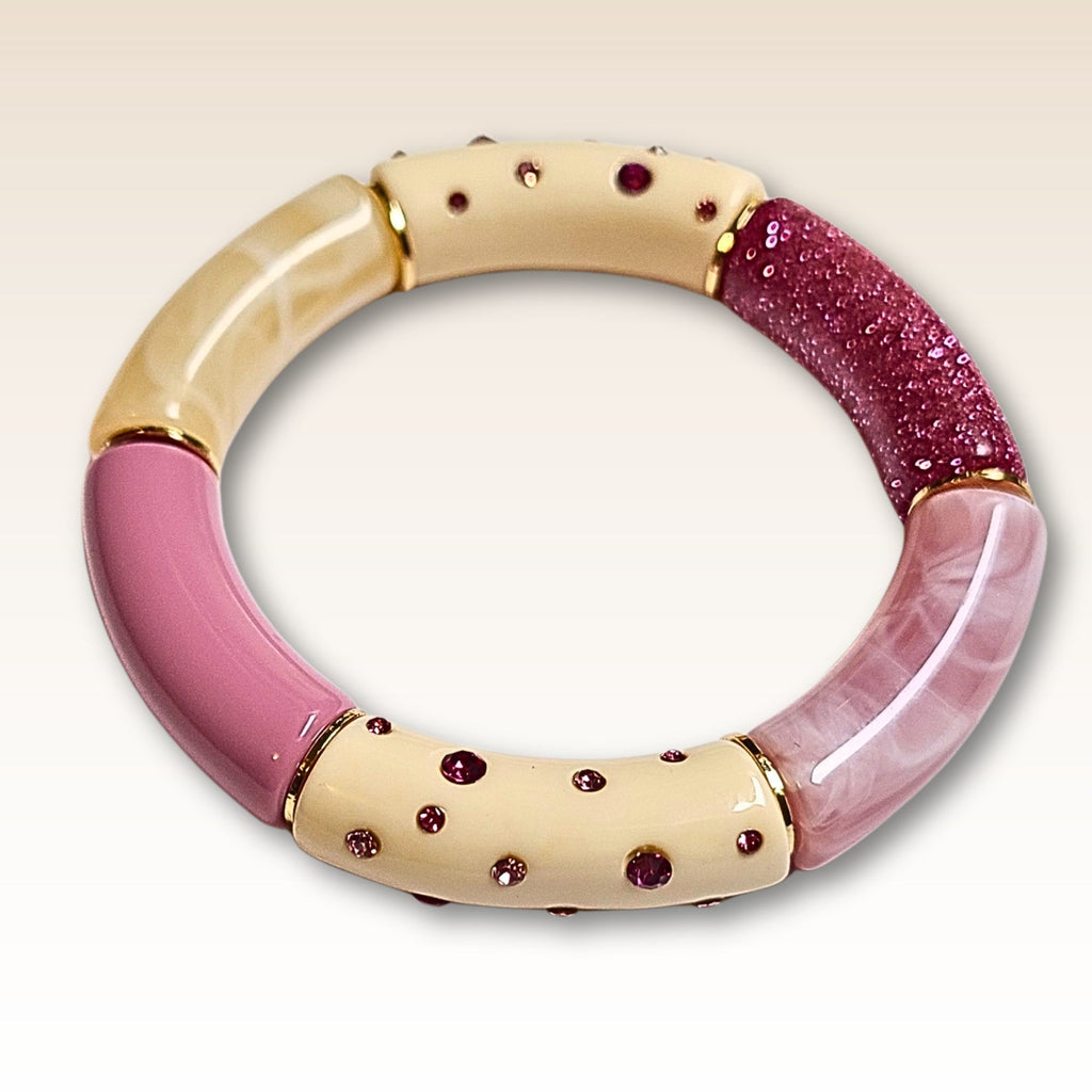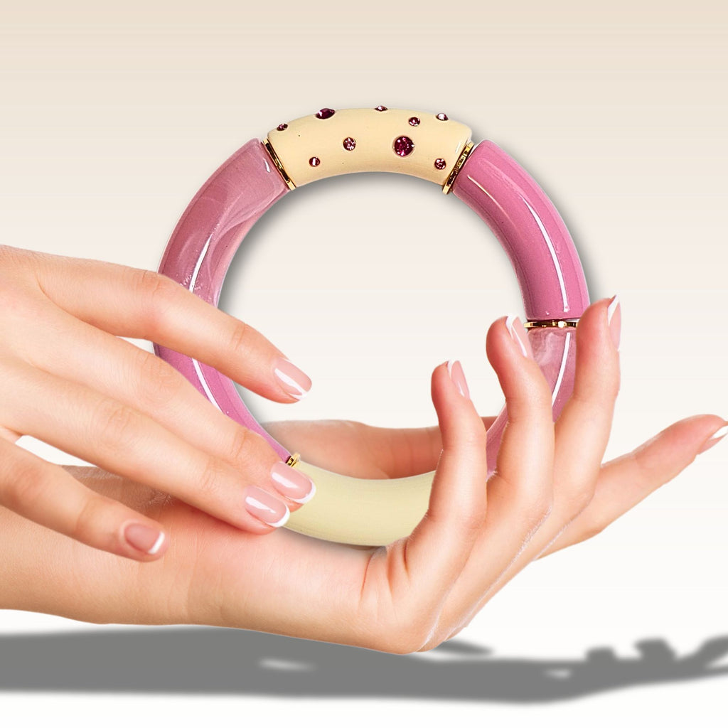 423 - Tubes incurvés, Ivoire & Strass - Spinelle Rose