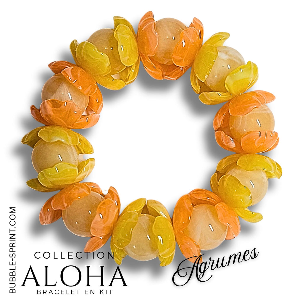 Fourniture du kit: 10 boules de 10mm en acrylique, 20 fleurs orchidée de 20mm , fil élastique