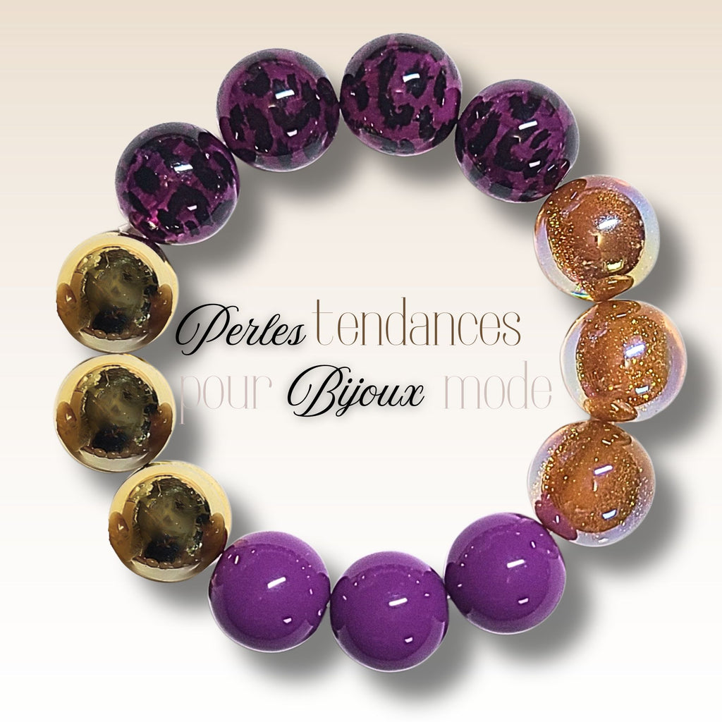 230 - Boules acryliques Léopard Raisin 16MM