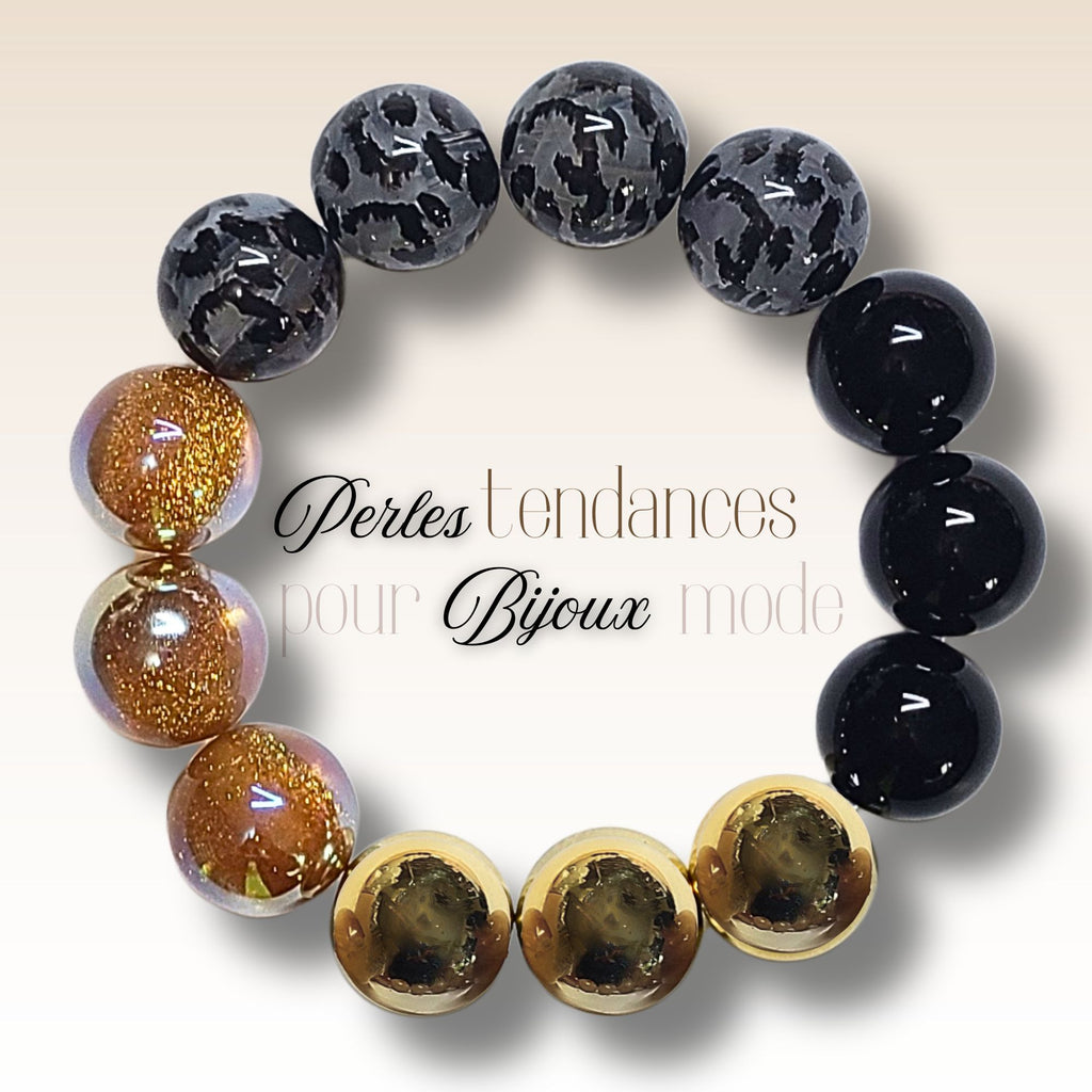 233 - Boules acryliques Léopard Gris fumé 16MM