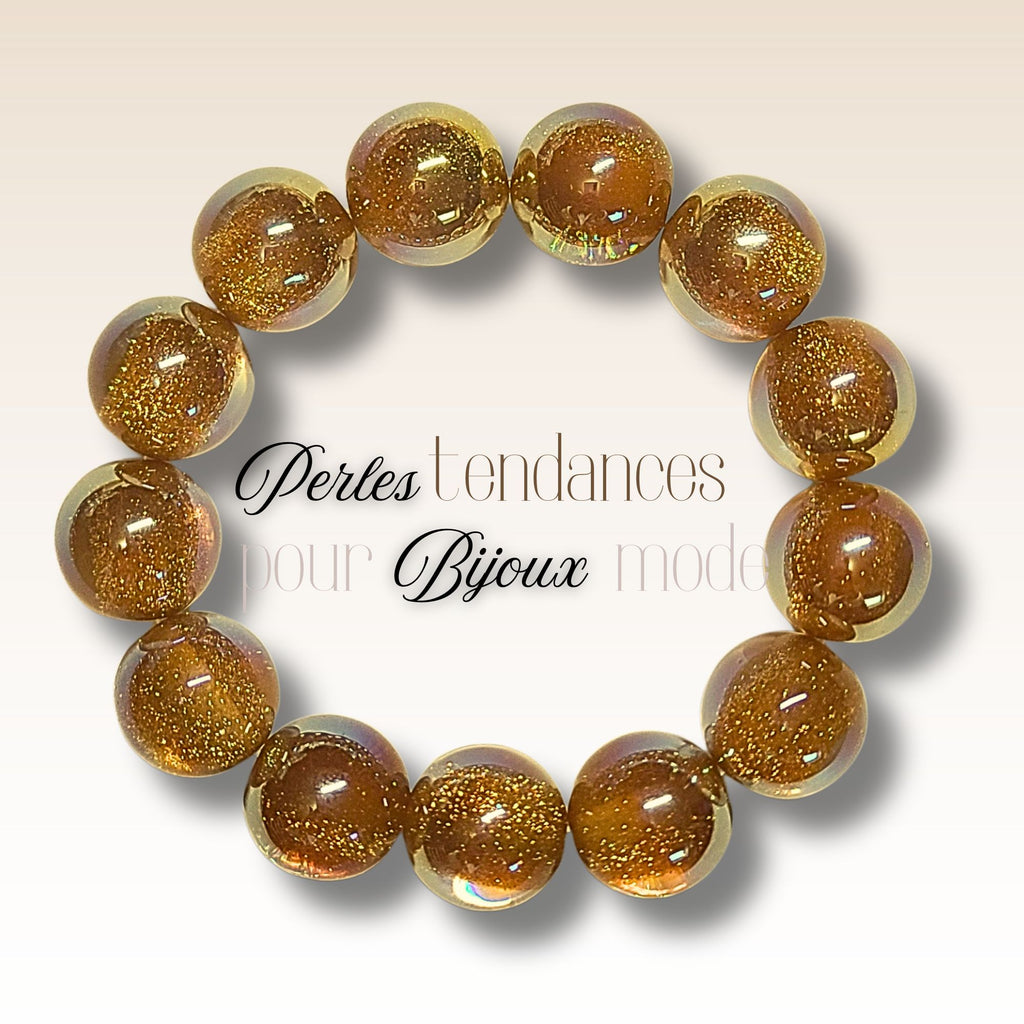 235 - Boules acryliques Glitter AB Ambre 16MM