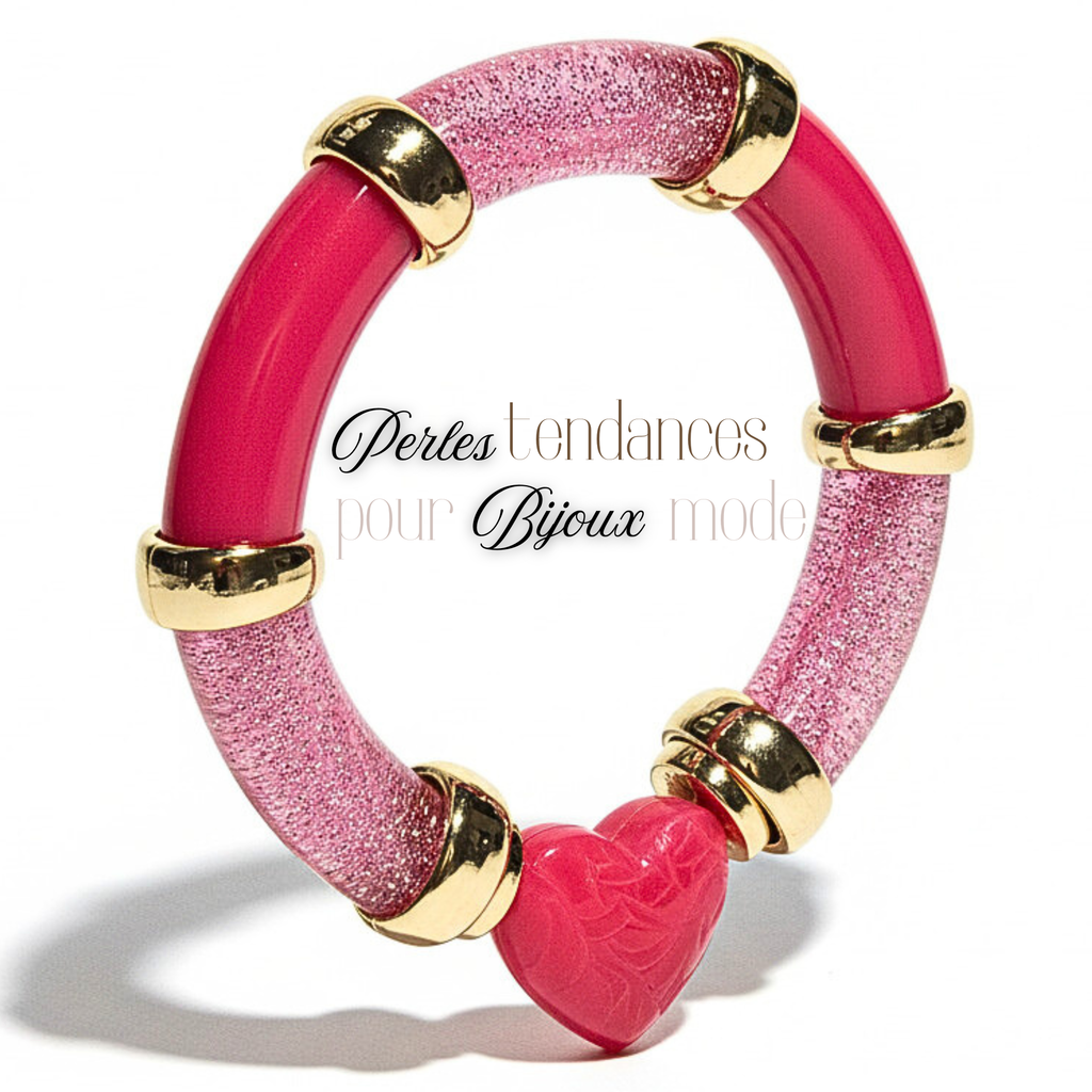 52- Tubes incurvés à paillettes, Fuchsia 12MM