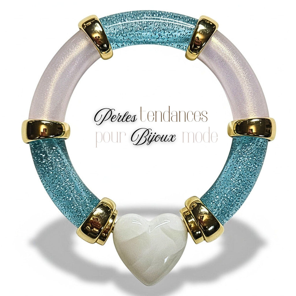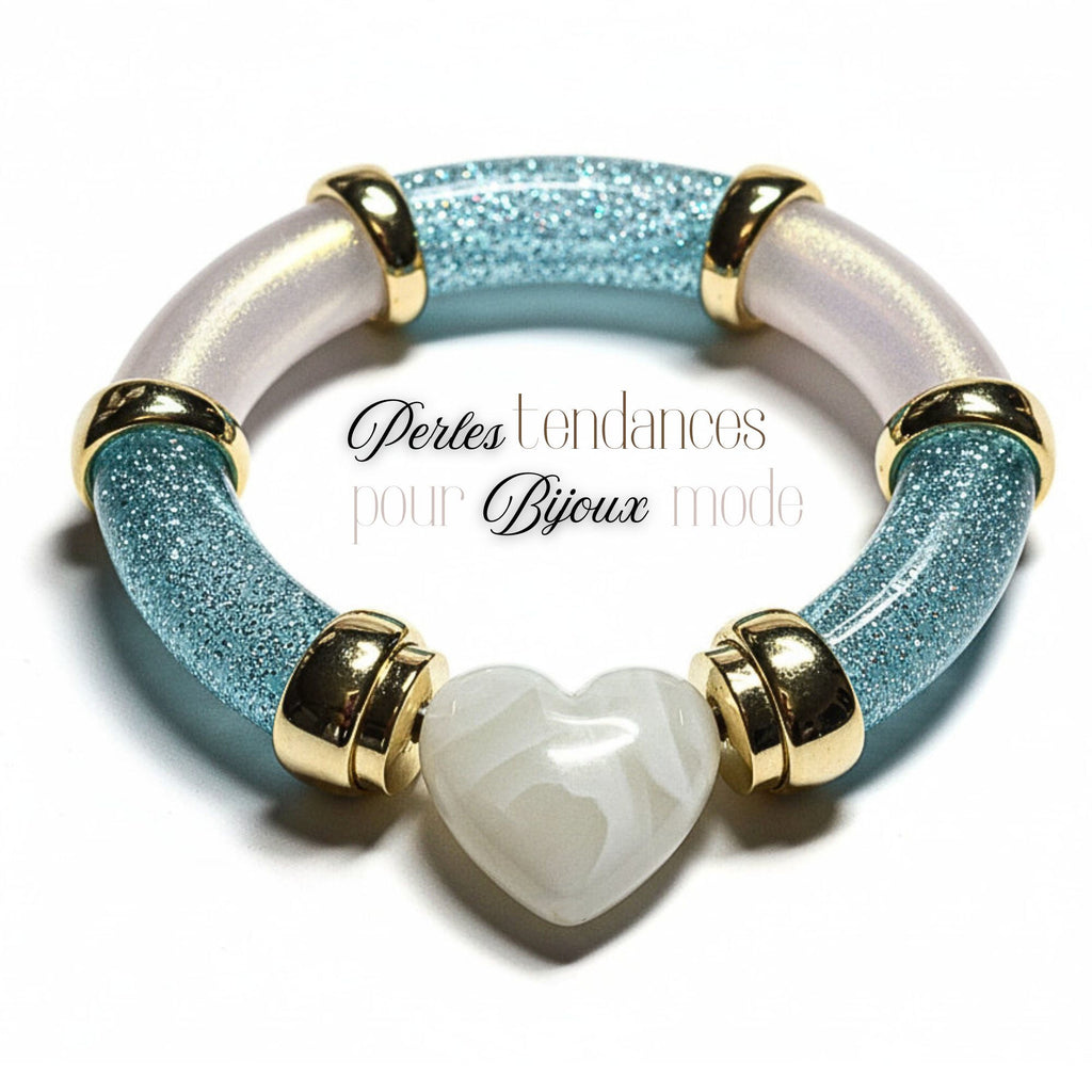 53- Tubes incurvés à paillettes, Turquoise 12MM
