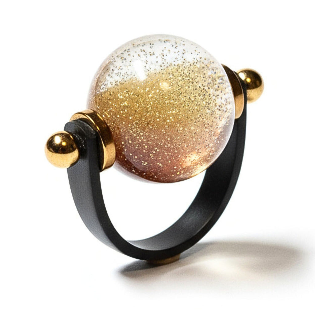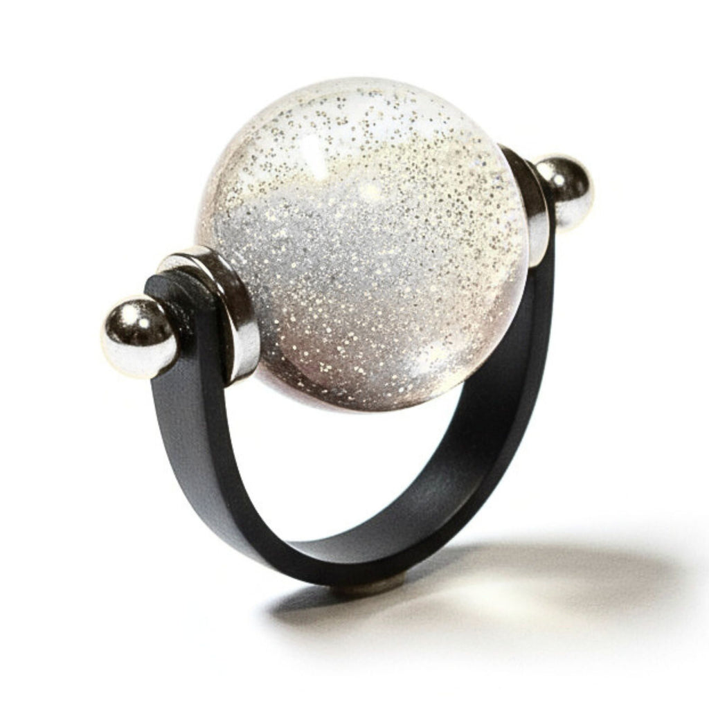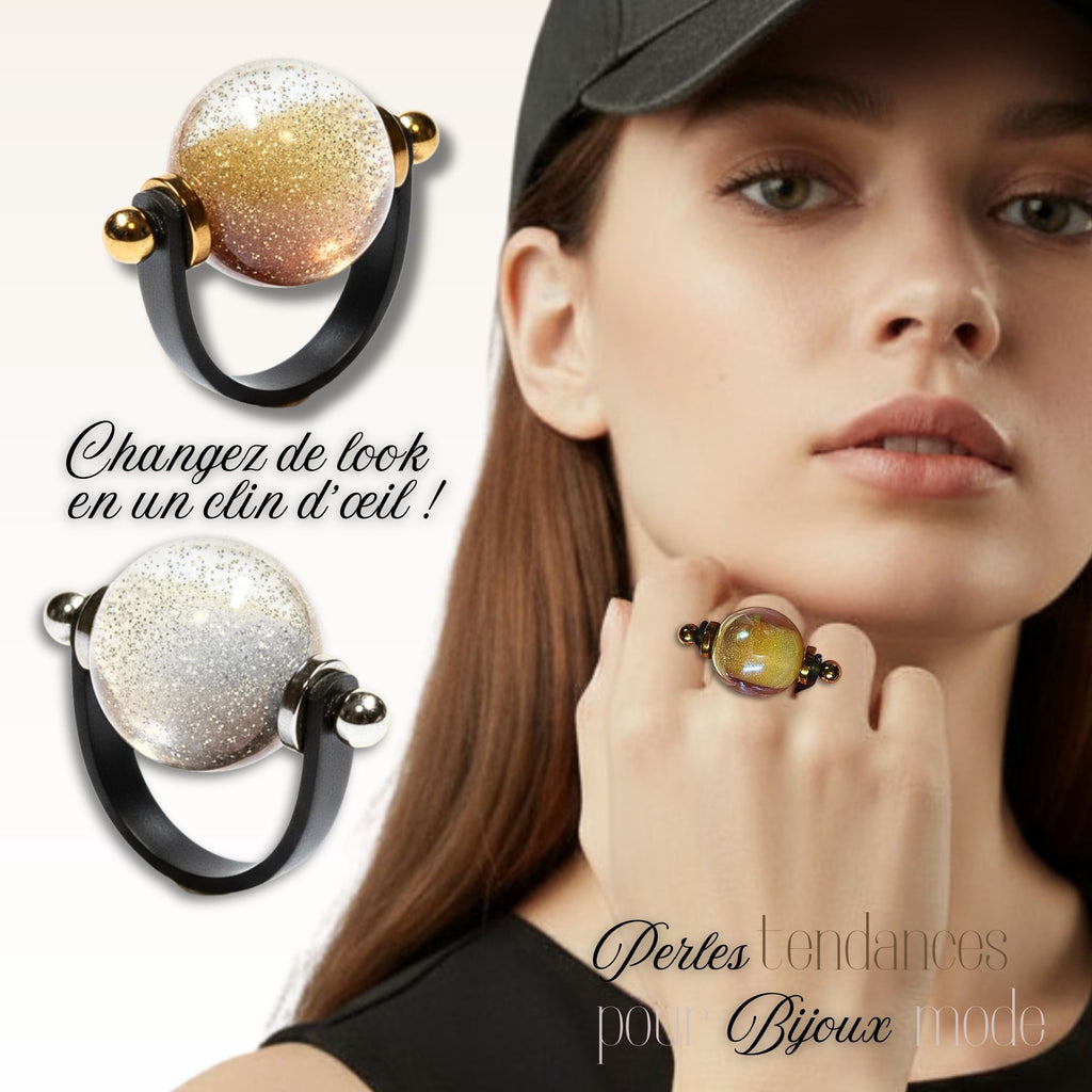 Bague interchangeable, boule de 20mm, 2 rondelles hématite 8mm HD-2, sangle en silicone et fermoir Médium de 35mm