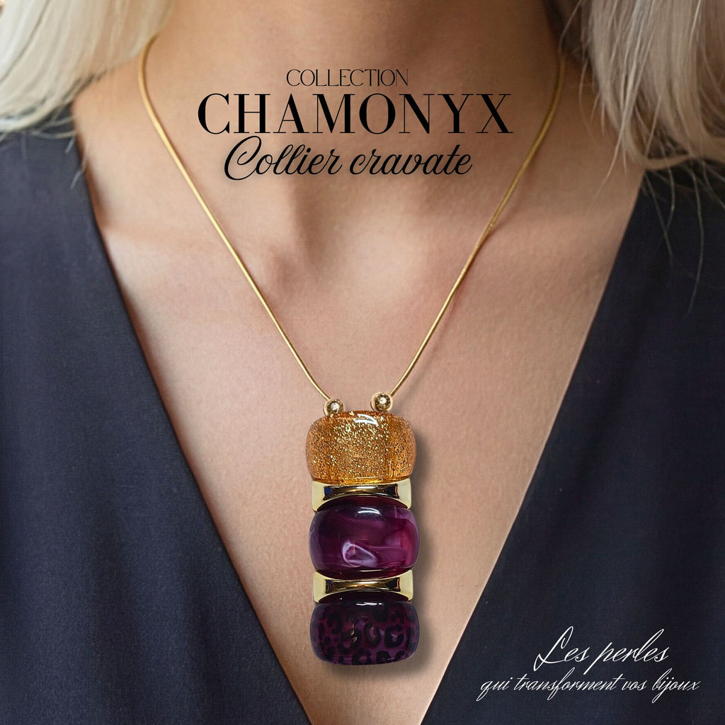 Fourniture du kit: 70cm de cordon, 2 cache -noeuds Waterproof, 1 fermoir et anneaux Waterproof, 2 boules dorées brossées 8MM en CCB Waterproof, 2 barres de séparations en CCB Waterproof, 3 palets Chamonyx en acrylique