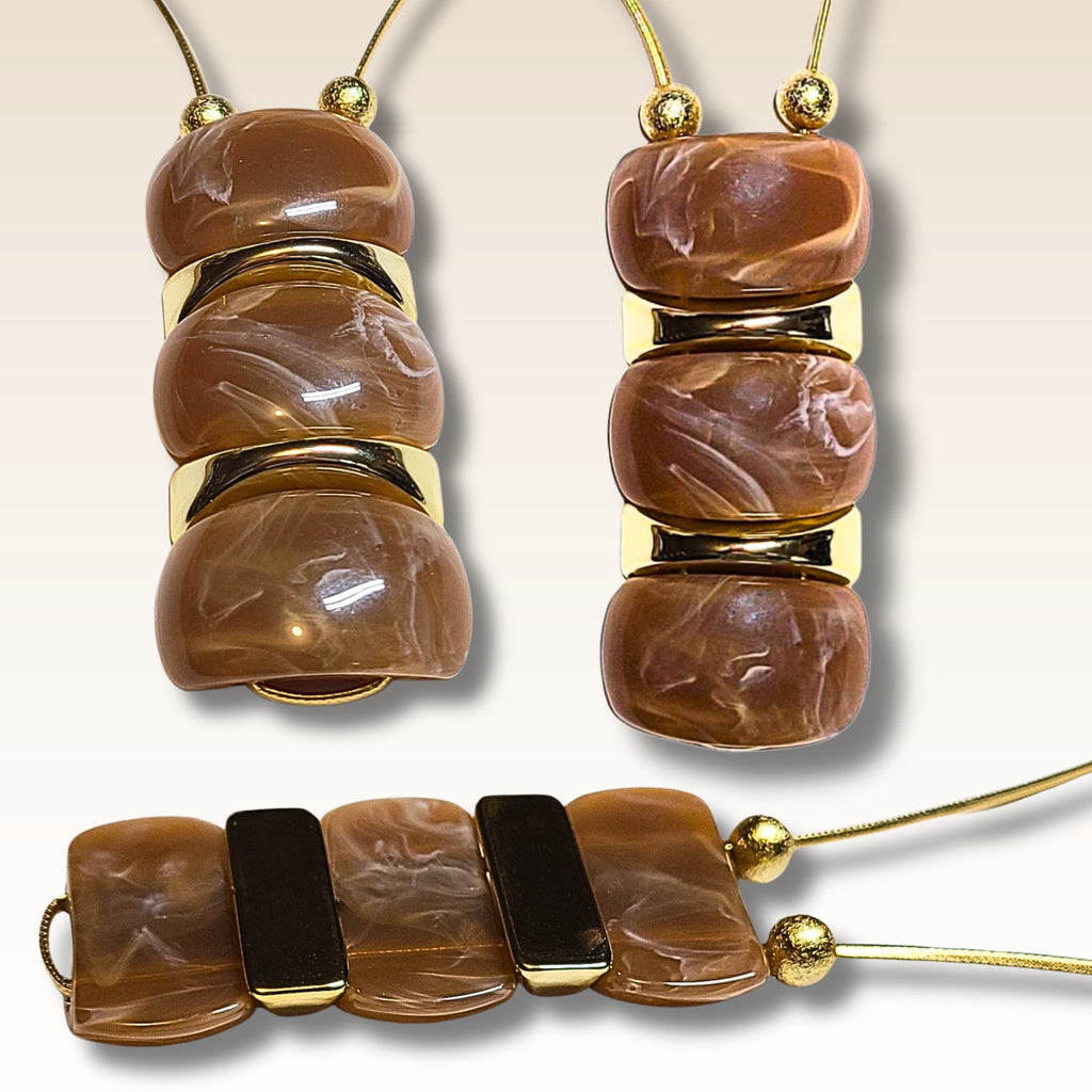 Fourniture du kit: 70cm de cordon, 2 cache -noeuds Waterproof, 1 fermoir et anneaux Waterproof, 2 boules dorées brossées 8MM en CCB Waterproof, 2 barres de séparations en CCB Waterproof, 3 palets Chamonyx en acrylique